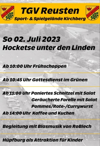 Am Sonntag findet die 13. Hocketse des TGV Reusten statt. Viele Jahre in der Sommergasse beheimatet soll die TGV-Hocketse-Tradition jetzt „Unter den Linden“ auf dem Sportgelände Kirchberg fortgesetzt werden.